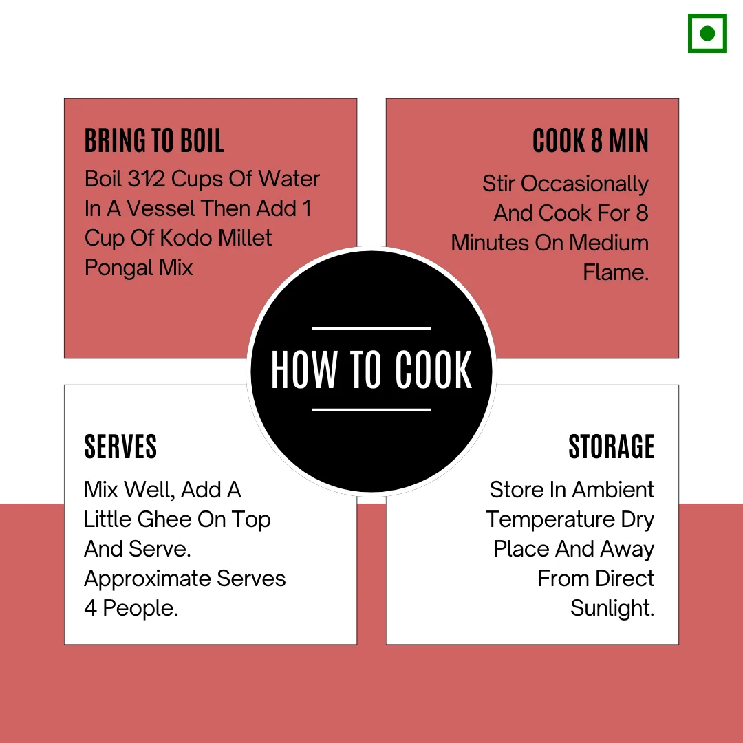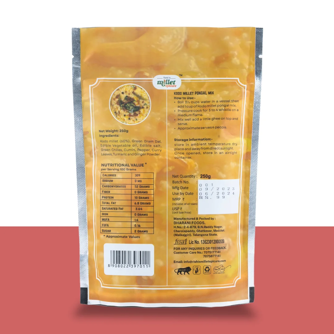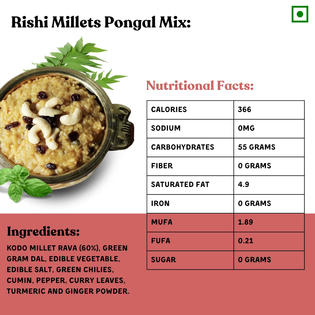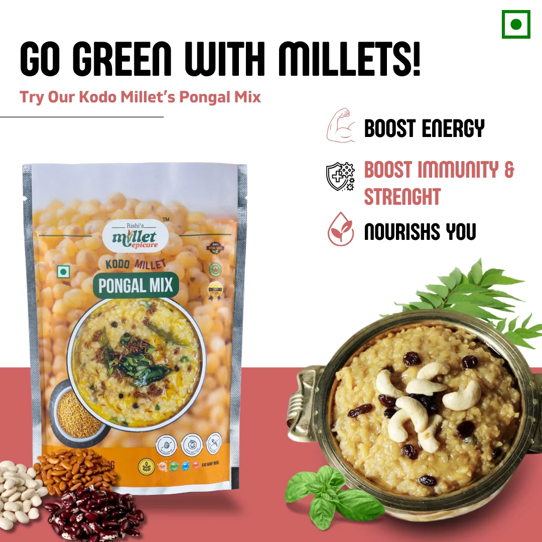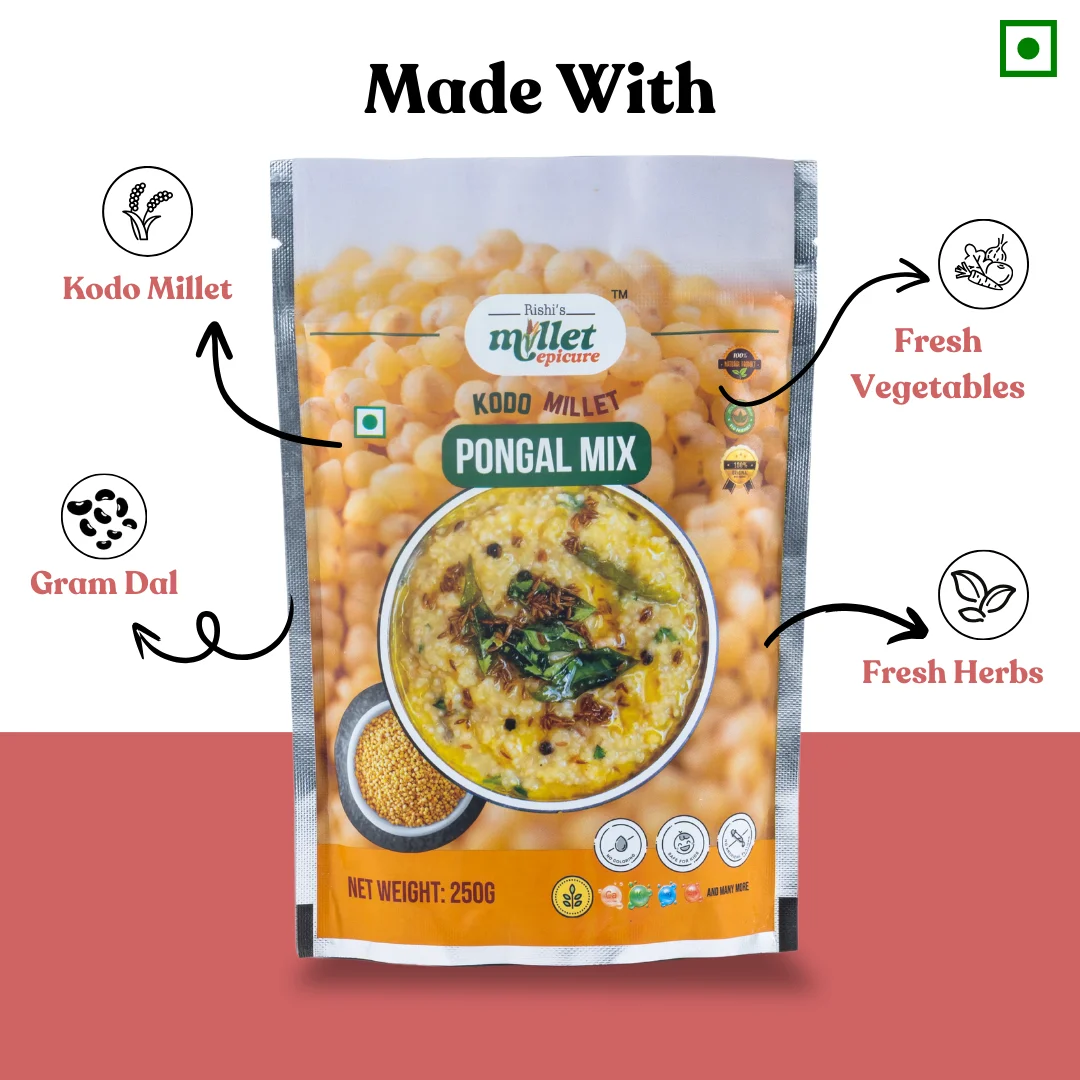 Delight In The Nourishing Taste Of Kodo Millets Pongal, A Wholesome And Flavorful South Indian Delicacy. Crafted From High-Quality Kodo Millets, This Dish Offers A Unique Twist On Traditional Pongal, With A Delicate, Earthy Flavor And A Satisfying Texture. Ideal For A Nutritious Breakfast Or A Comforting Meal, Our Kodo Millets Pongal Is Rich In Fiber And Essential Nutrients, And Naturally Gluten-Free. Experience A Healthy And Delicious Way To Start Your Day.